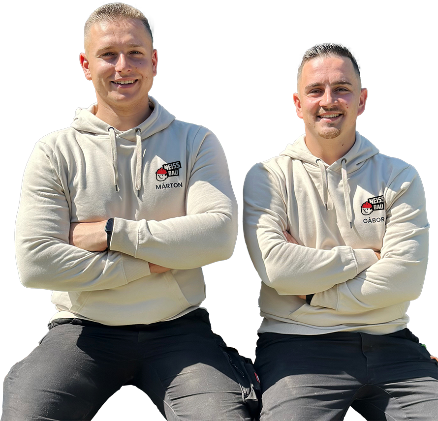 A Neiss-Bau névválasztás is e közös alapokra utal: vezetékneveink – Németh és Kiss – kezdőbetűiből alkotott mozaikszó, amely nemcsak a cég nevét, hanem a szemléletünket is tükrözi. Hiszünk abban, hogy a szakmai fejlődés, a megbízhatóság és az emberi kapcsolatok egymást erősítik – ez az, ami a munkánk alapját képezi.