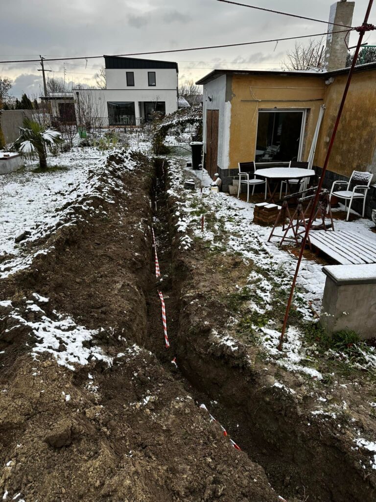 A korszerűtlen vízbetáplálás miatt szükségessé vált az árok kiásása a vízóra és a ház között. A csőszerelési munkák ideje alatt…