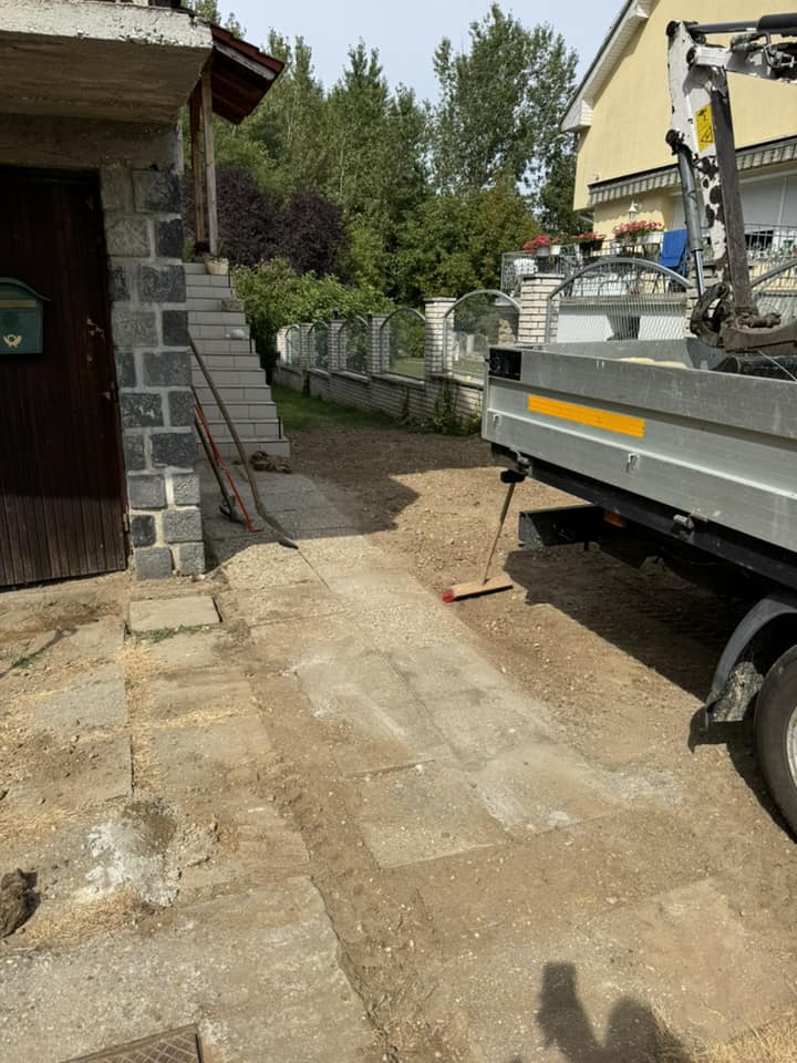 Fertődön kapubejáró, parkoló és terasz alapozása történt, amely magában foglalta az alap kiásását, geotextil fektetését és murvával való feltöltést.