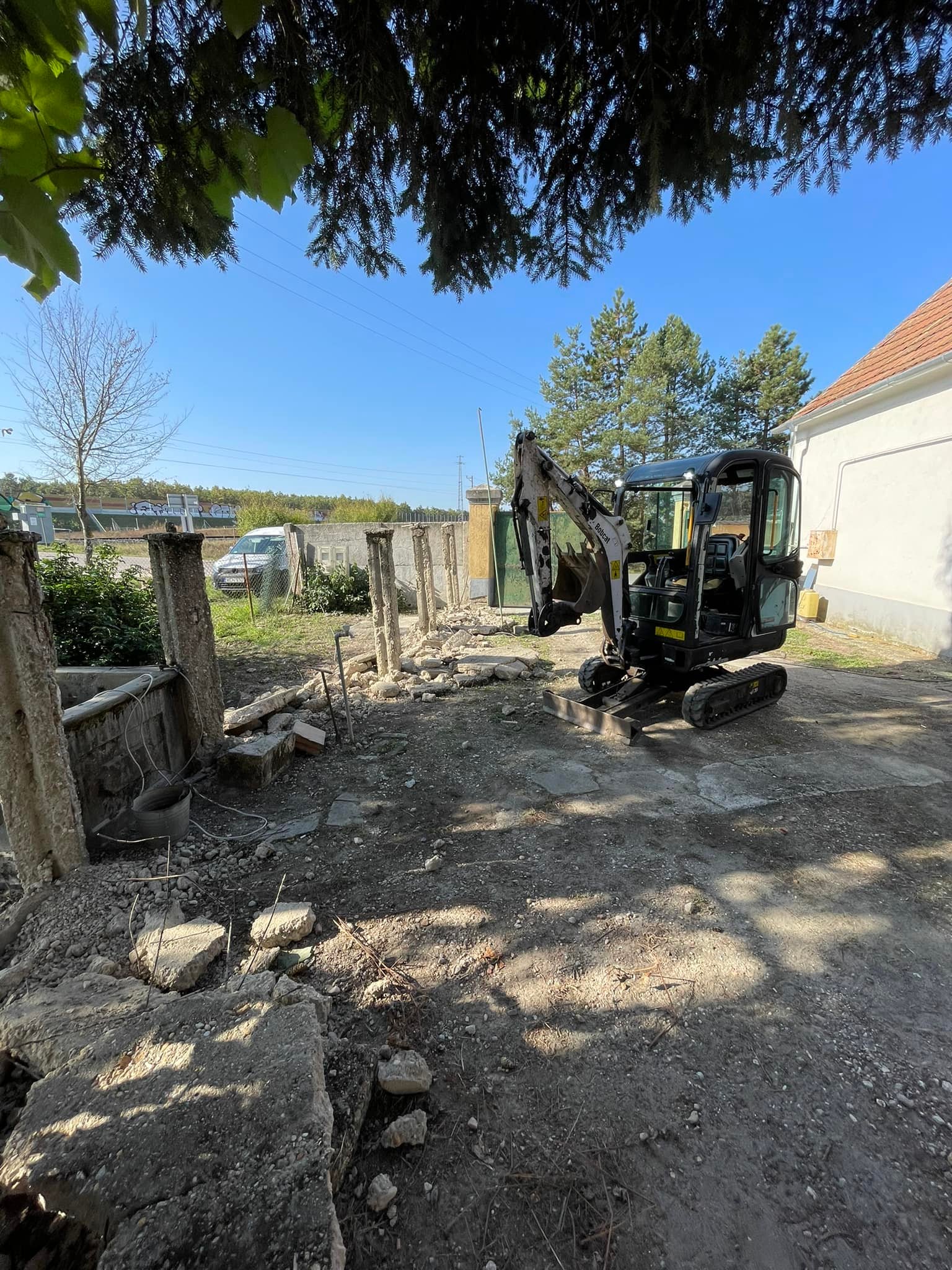 A projekt keretében megvalósult a régi betonkerítés elbontása, valamint a hozzá tartozó betonlábak kiásása.