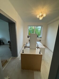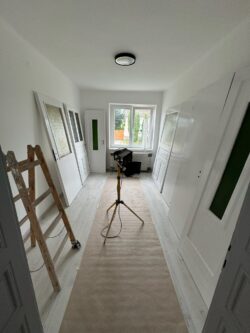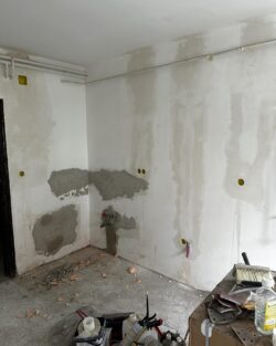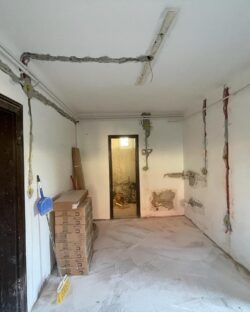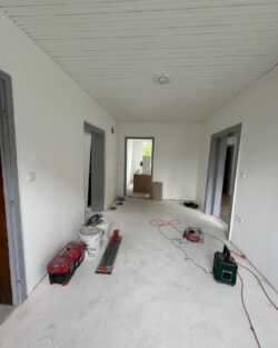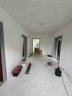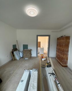 Fertődön egy családi ház korszerűsítése volt a feladatunk, sor került a villamos hálózat teljes felújítására. A régi alumínium vezetékek rézre cserélésére, új szerelvények, elosztószekrény és lámpatestek felszerelésére, valamint a hőszivattyús fűtés villamos részének kivitelezésére került sor. A munkálatok árokásással, bontással, betonozással és tereprendezéssel egészültek ki.
