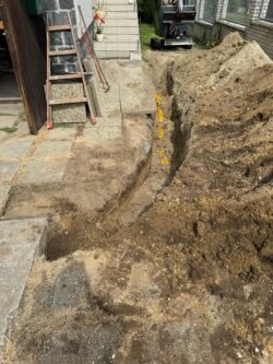 A korszerűtlen vízbetáplálás miatt szükségessé vált az árok kiásása a vízóra és a ház között. A csőszerelési munkák ideje alatt sor került a kertben lévő tuskók eltávolítására is. A nap végén az árok betemetésére és a tereprendezésre is sor került.