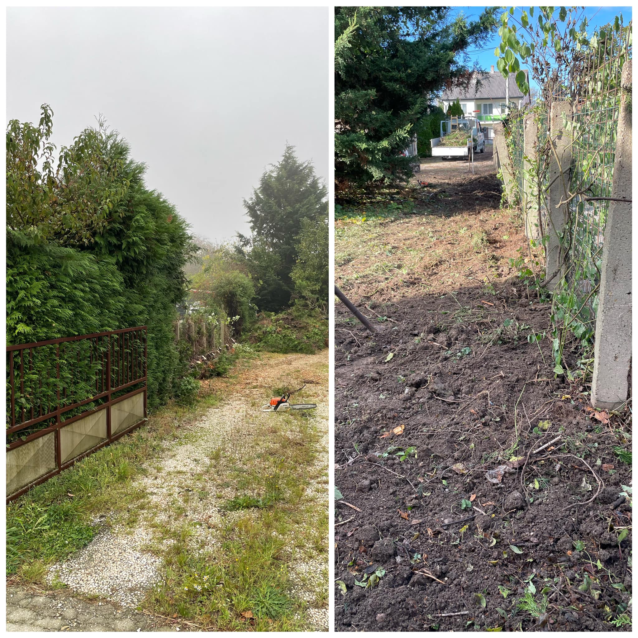 A kapuvári telken 45 méter hosszan sor került a tuják eltávolítására, valamint a tuskók kiszedésére.